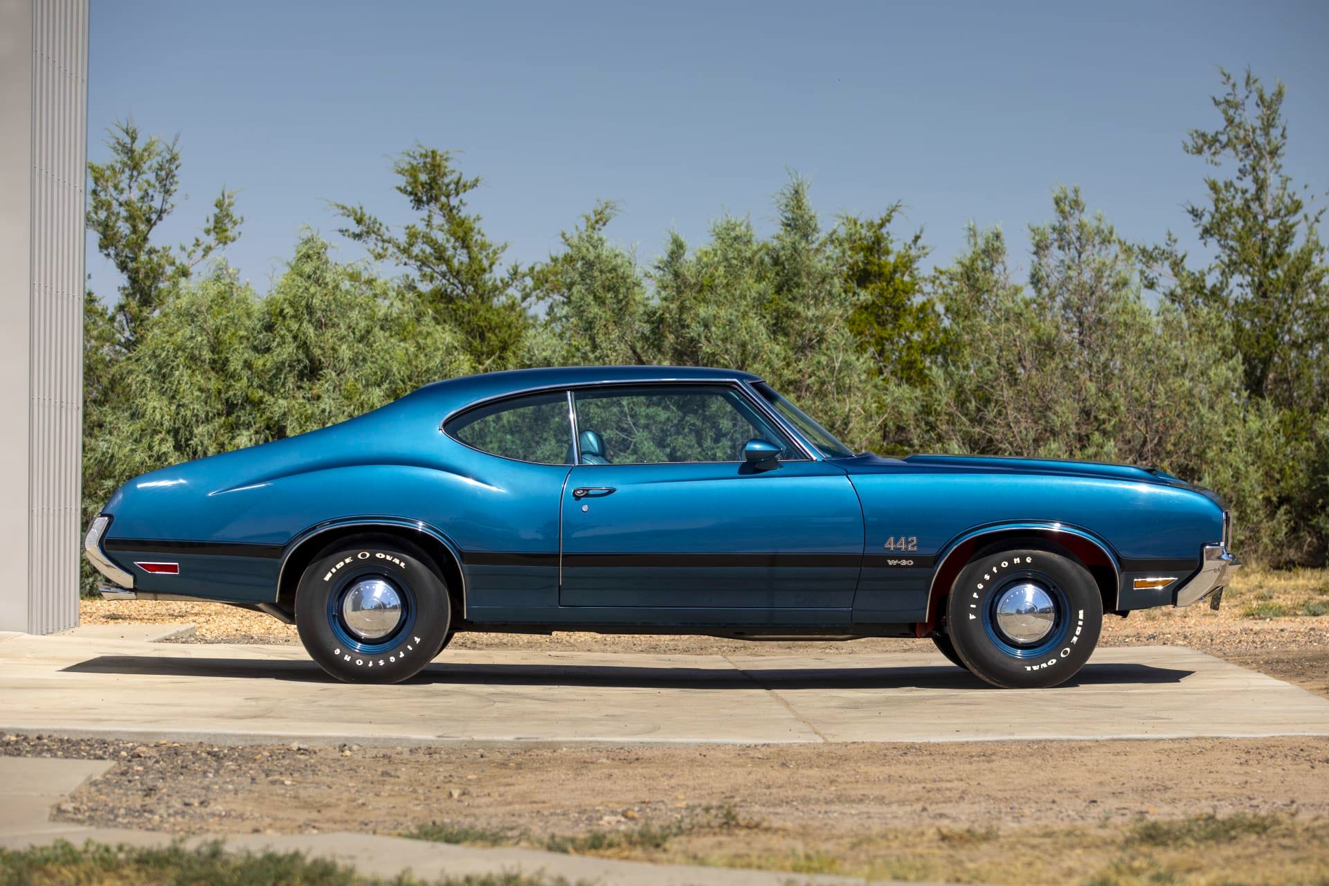 - The example highlighted is an exceptionally preserved 1970 Oldsmobile 442 W-30, one of only 1,032 built. Ordered new with the W-30, G80 Positraction axle, M21 close-ratio 4-speed, and Twilight Blue finish, it remains almost entirely original. It won Pebble Beach’s Preservation Postwar Class in 2018 and is now headed to auction with Mecum.