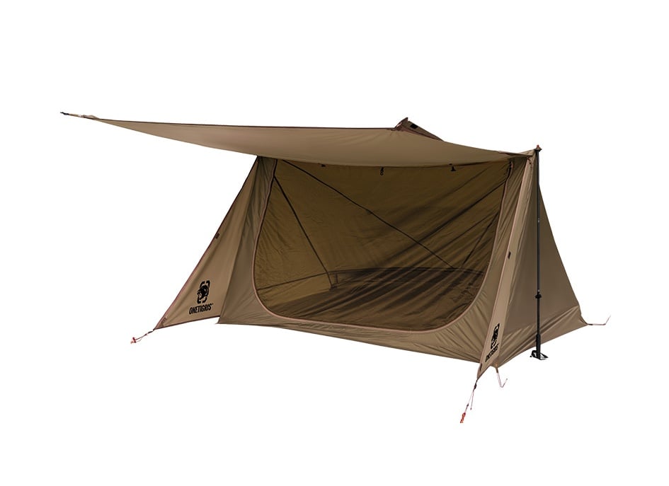 This is the updated 2.0 version of the popular Backwoods Bungalow Bushcraft Shelter from the team at OneTigris. In short, it’s an ultra-lightweight 1.4 kg tent that can accommodate two, and it has a built-in awning.