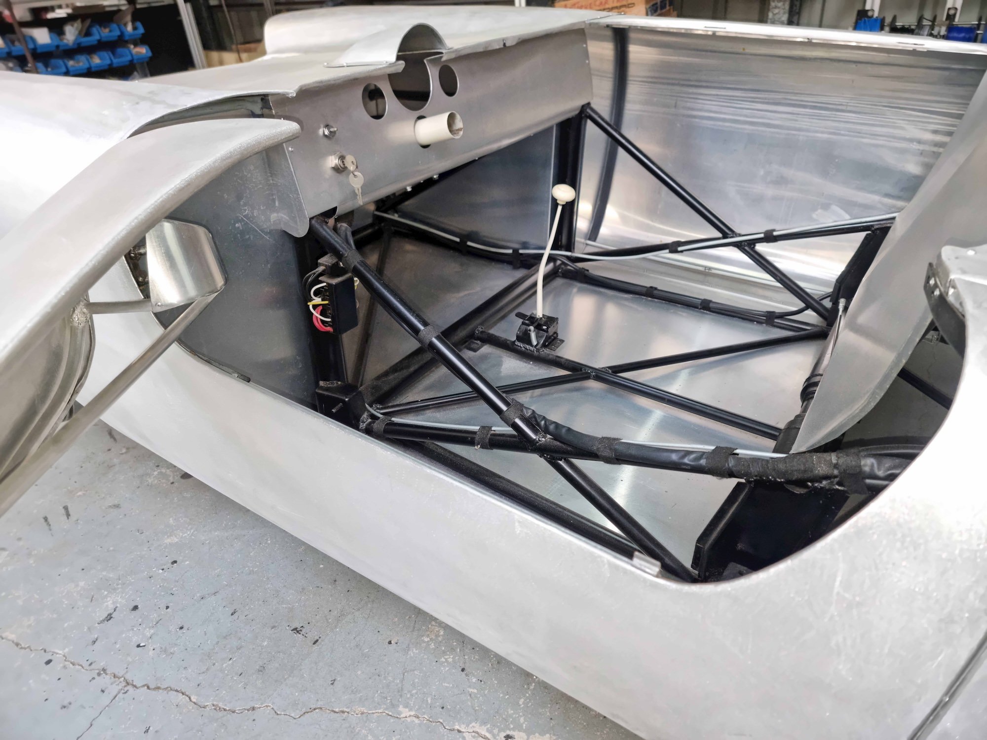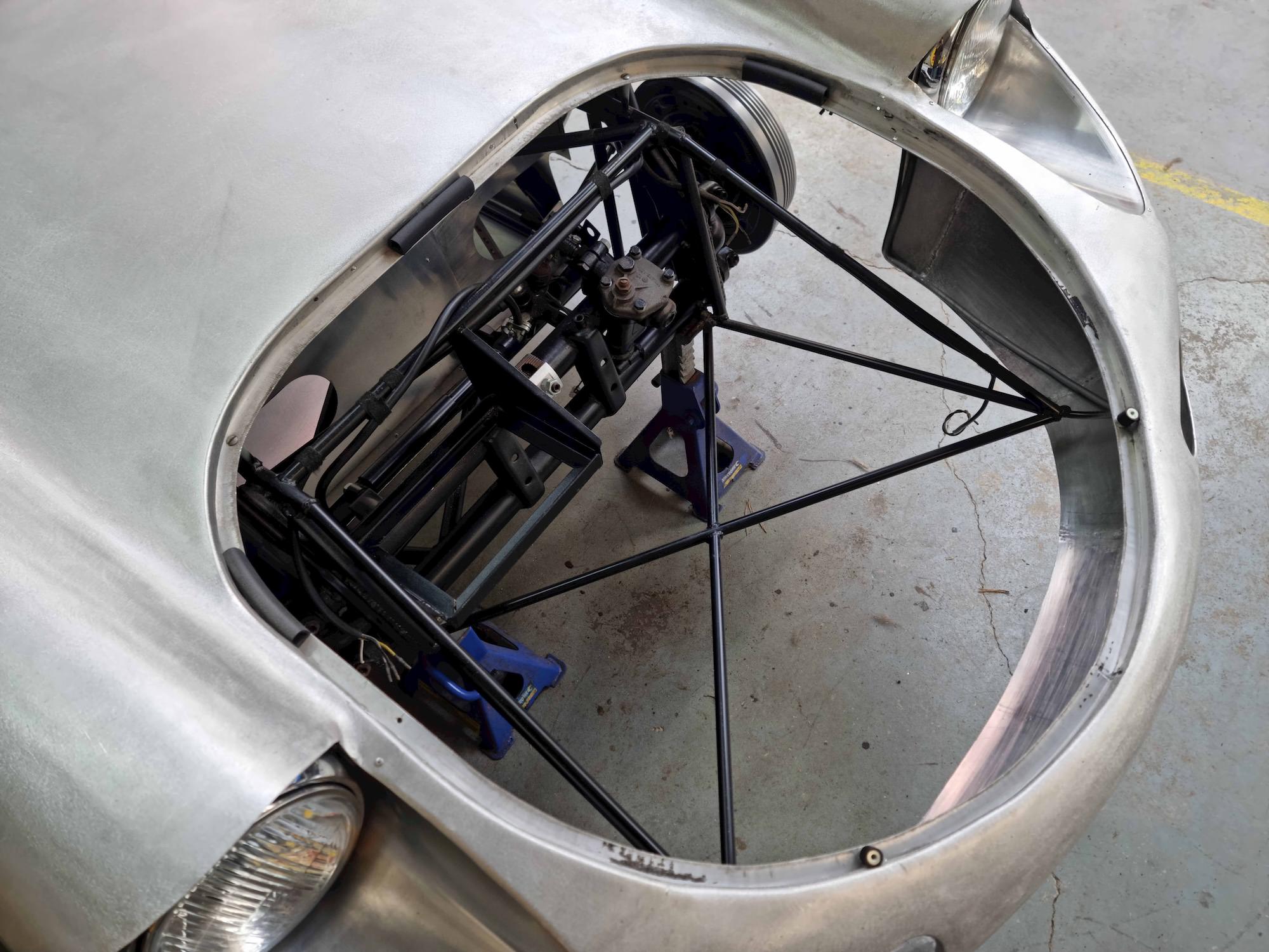 Just one example of the 645 was made, it was destroyed in an accident in 1956, and burned down to its chassis in the ensuing fire. This 645 recreation was built from the ground up by Porsche specialist Hardt Classics referencing factory blueprints, and it’s now being offered for sale in unfinished form.