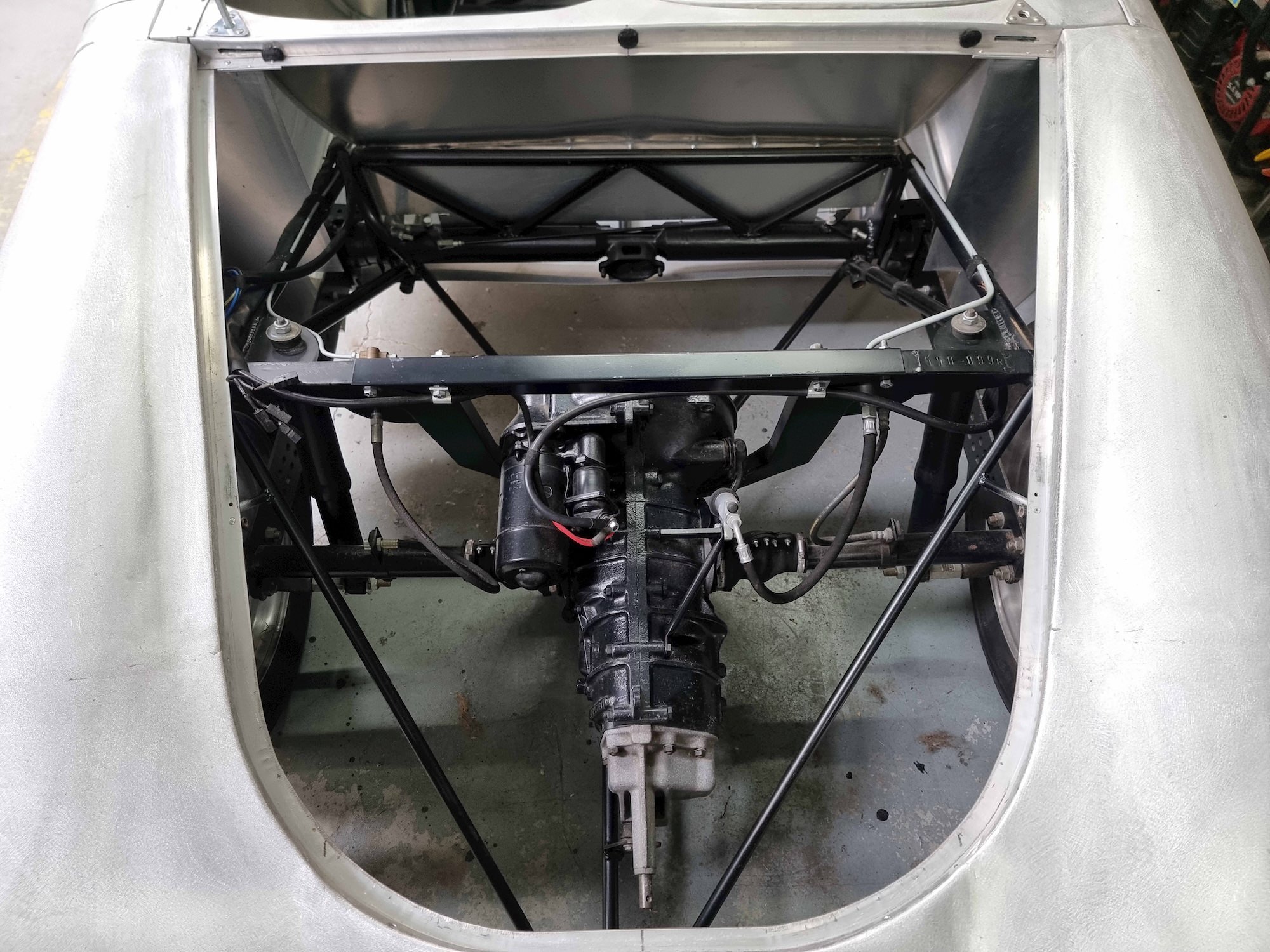 It has front drum brakes from a 356 Carrera GT, a 4-speed manual gearbox, and many other parts, though it is currently missing an engine – in order to do the job properly it’ll need a Porsche Type 547 “Fuhrmann” four-cam flat-four, though these don’t come cheap.