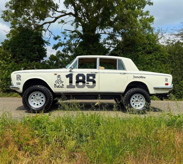 - This 1973 Rolls-Royce Silver Shadow has been converted into a 4×4 using a Mitsubishi Warrior chassis and drivetrain. The build pays tribute to the original “Jules” Paris-Dakar Rally Rolls-Royce and features a turbodiesel engine, full four-wheel drive capability, and a reported fuel economy of 23 mpg.