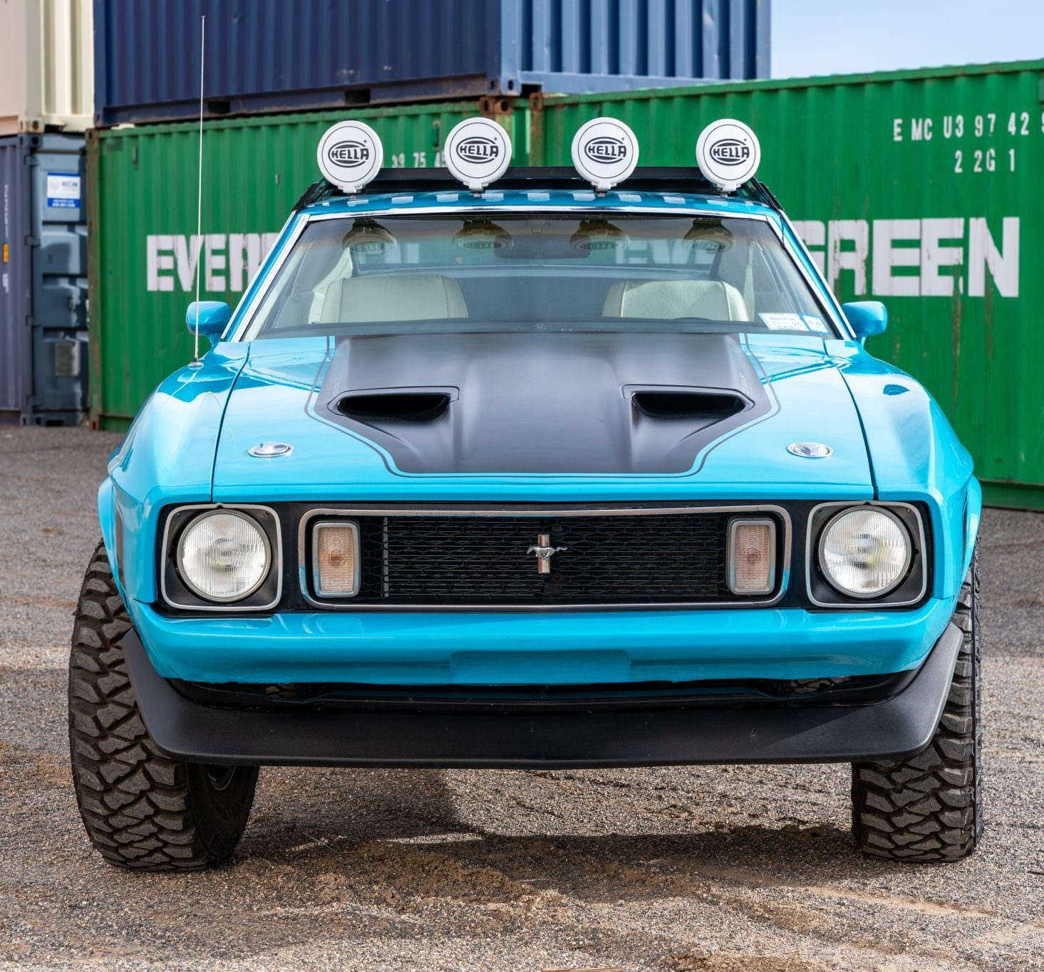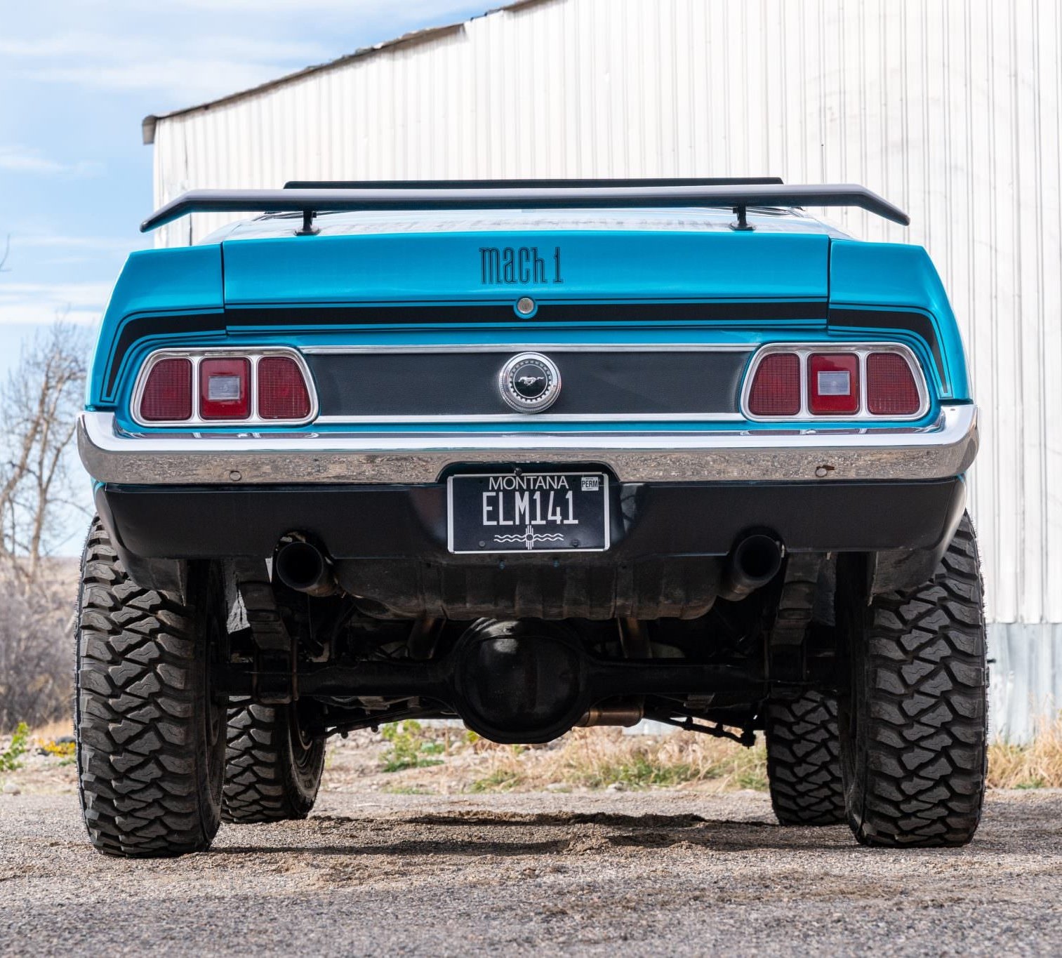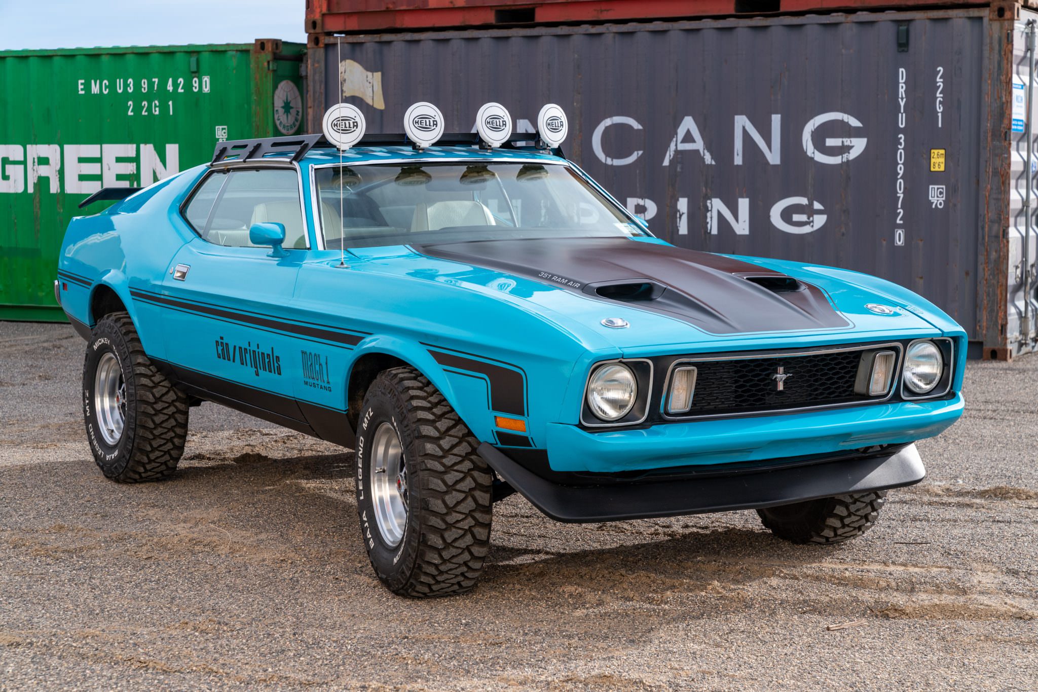 - This 1973 Mustang SportsRoof was rebuilt as a safari-style car with a lifted suspension, 31×10.50 Mickey Thompson tires, and 15″ Magnum 500-style wheels. It runs a 351 V8 backed by a 3-speed automatic. Added gear includes a roof rack with Hella spotlights, as well as upgraded suspension, braking, and steering systems.