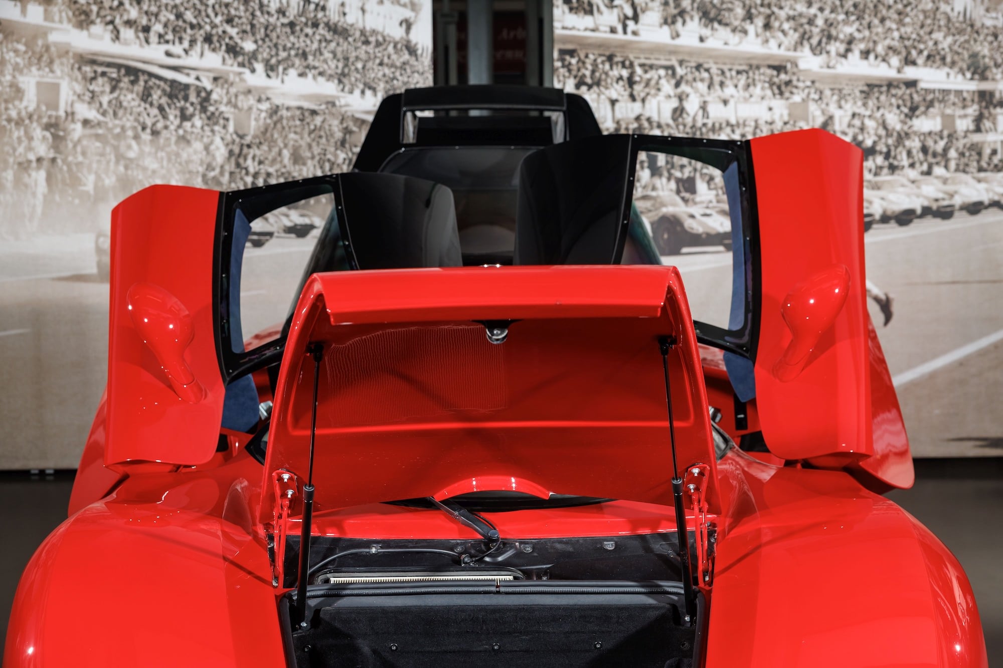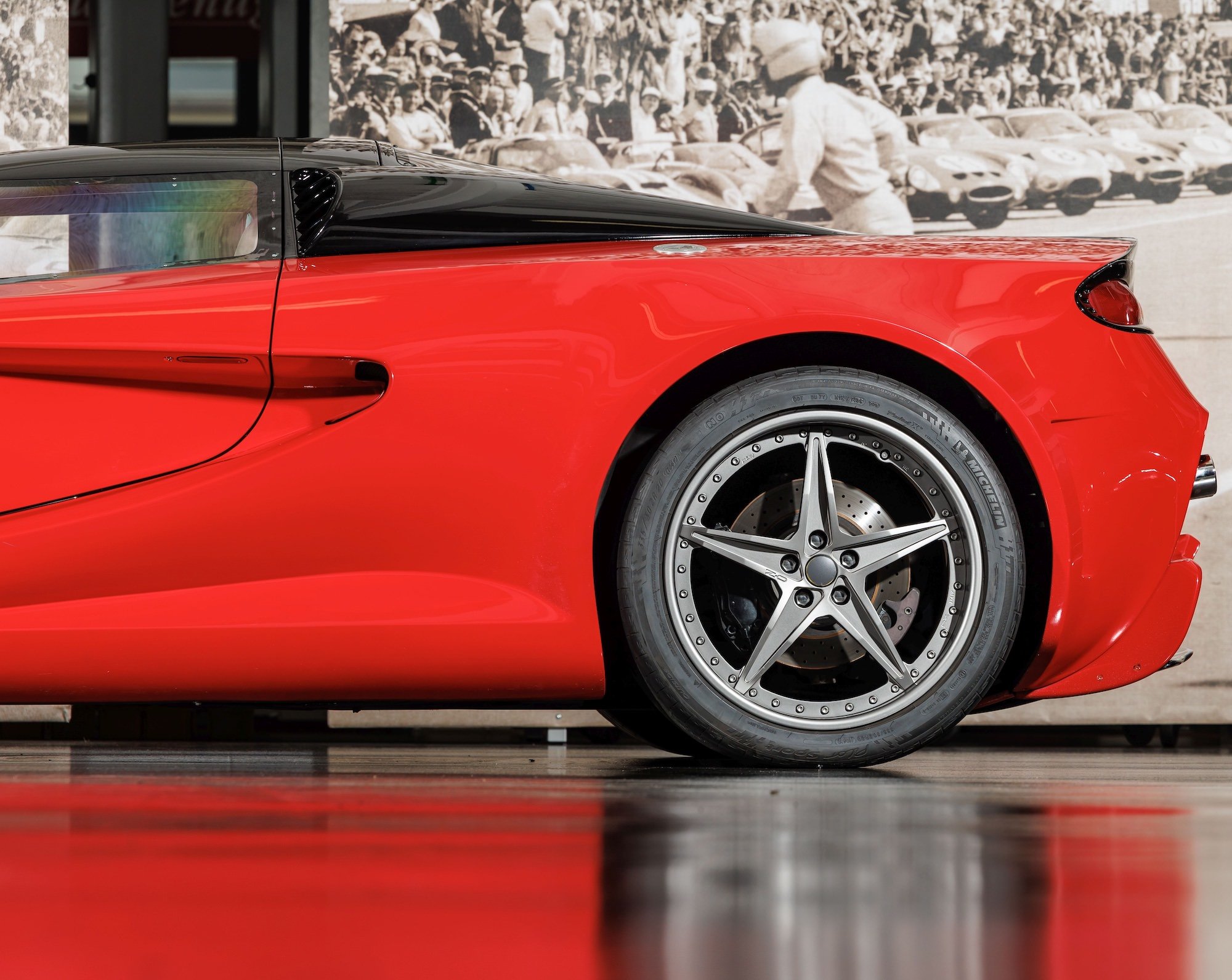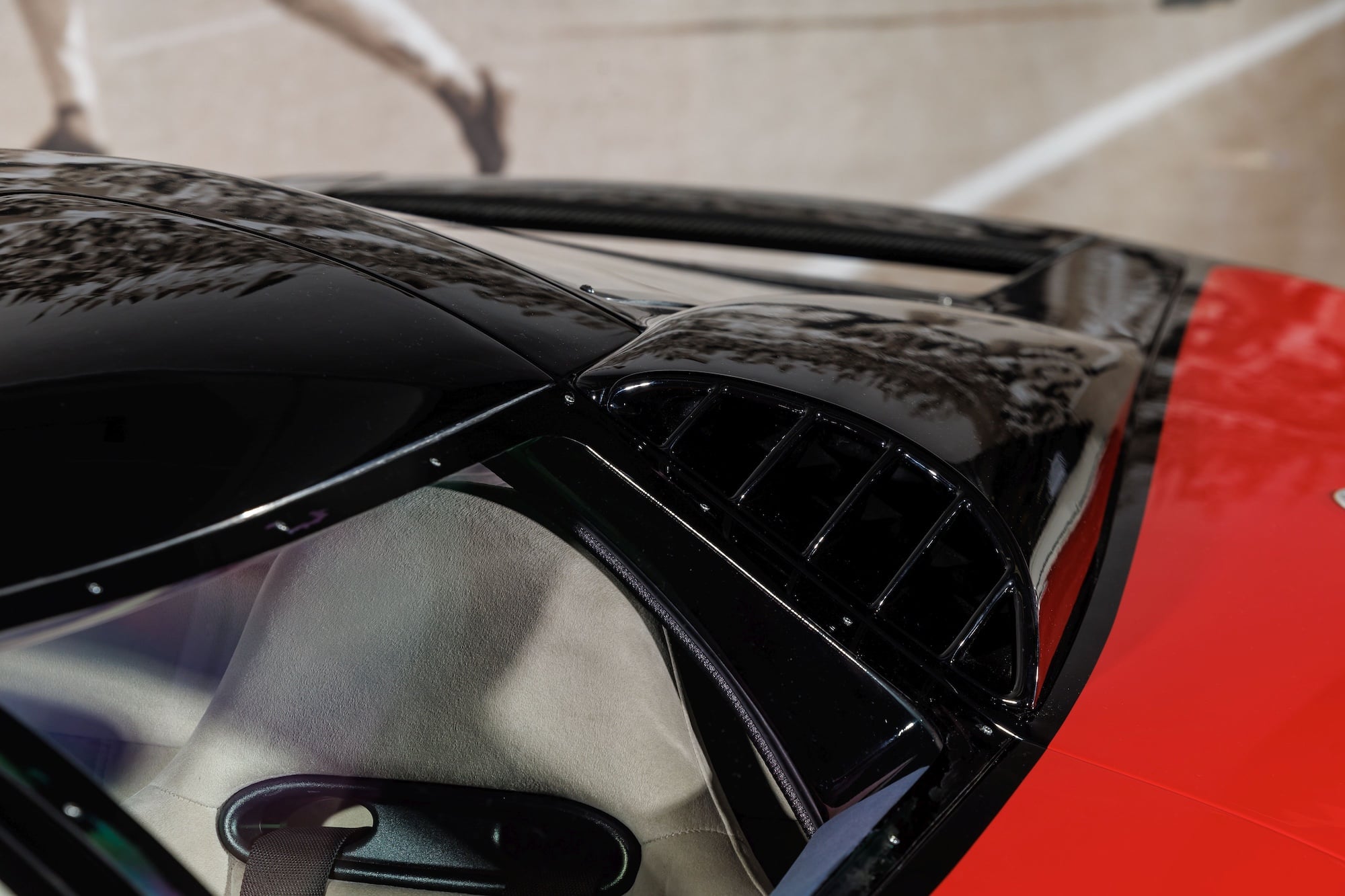 Butterfly doors added some theater, while the rear had a glass engine cover, prominent side intakes, and quad exhaust outlets. The cabin proportions were more tight, contributing further to the car’s compact, race-inspired street presence.