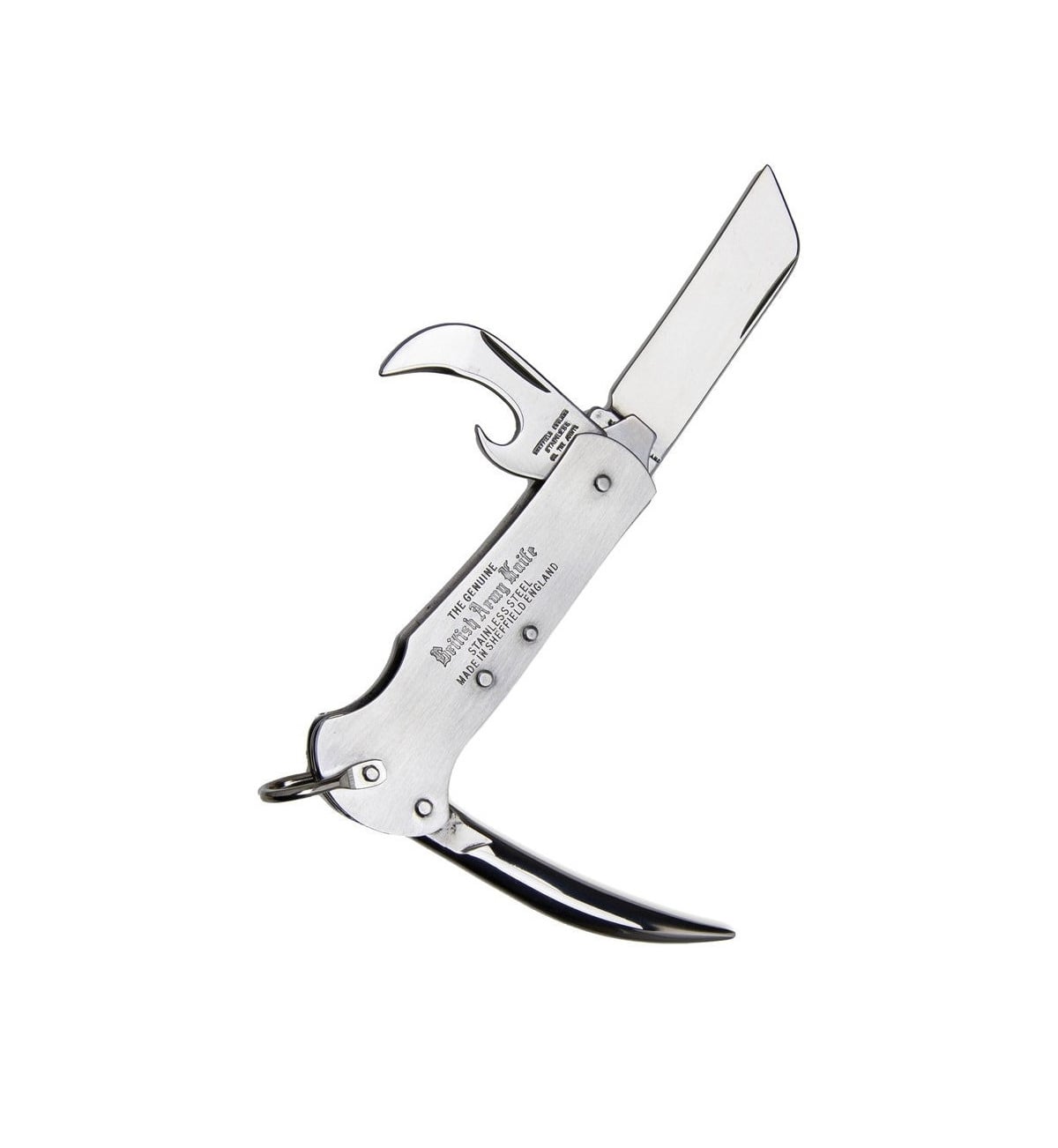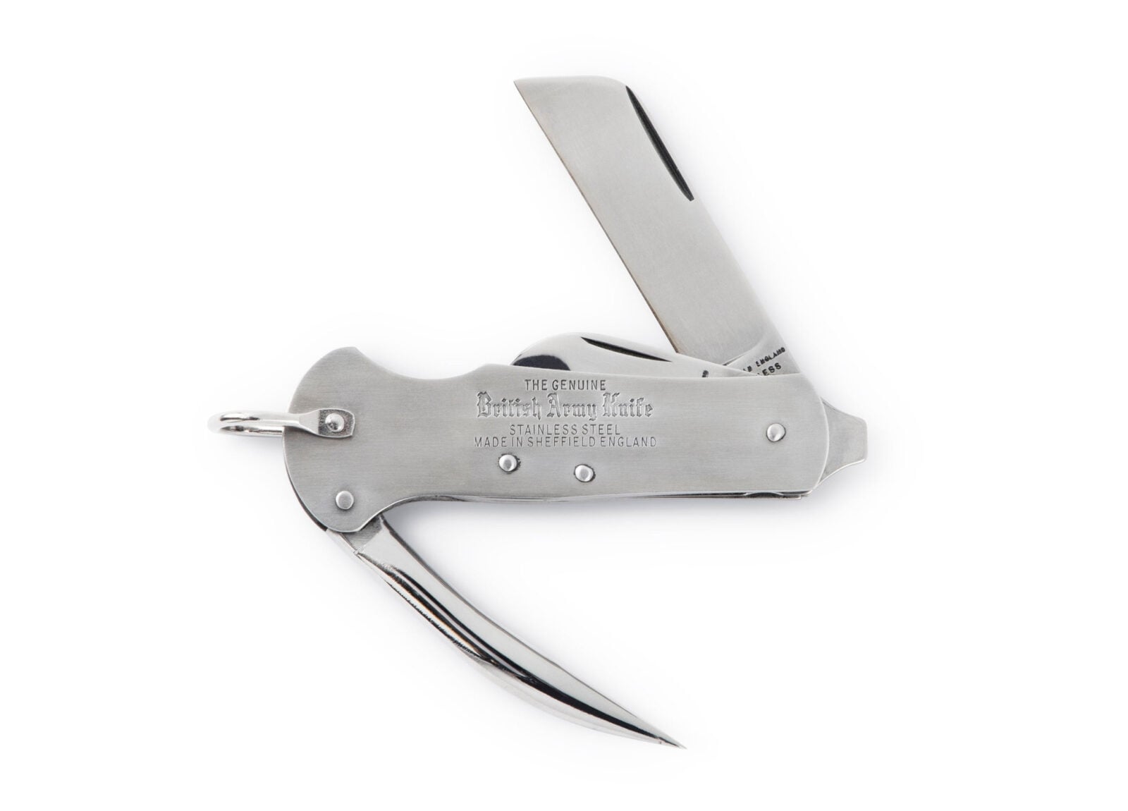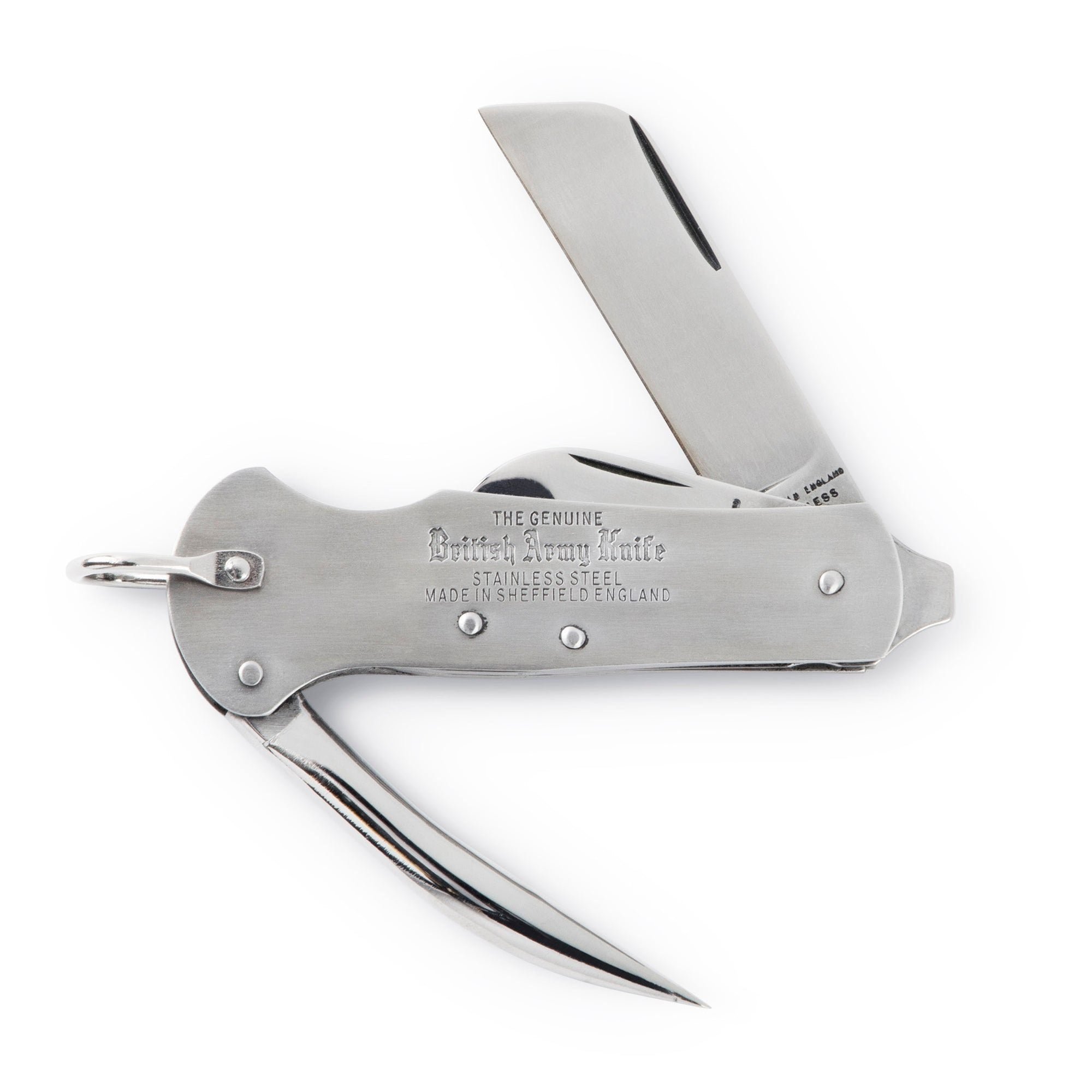 Though far less famous internationally than the Swiss Army Knife, the British Army Knife is by far the older design and may have even influenced the Swiss knife. Joseph Rodgers has been producing folding knives of this type in Sheffield since before the mid-1800s, while the first Swiss Army Knives were not delivered until 1891.