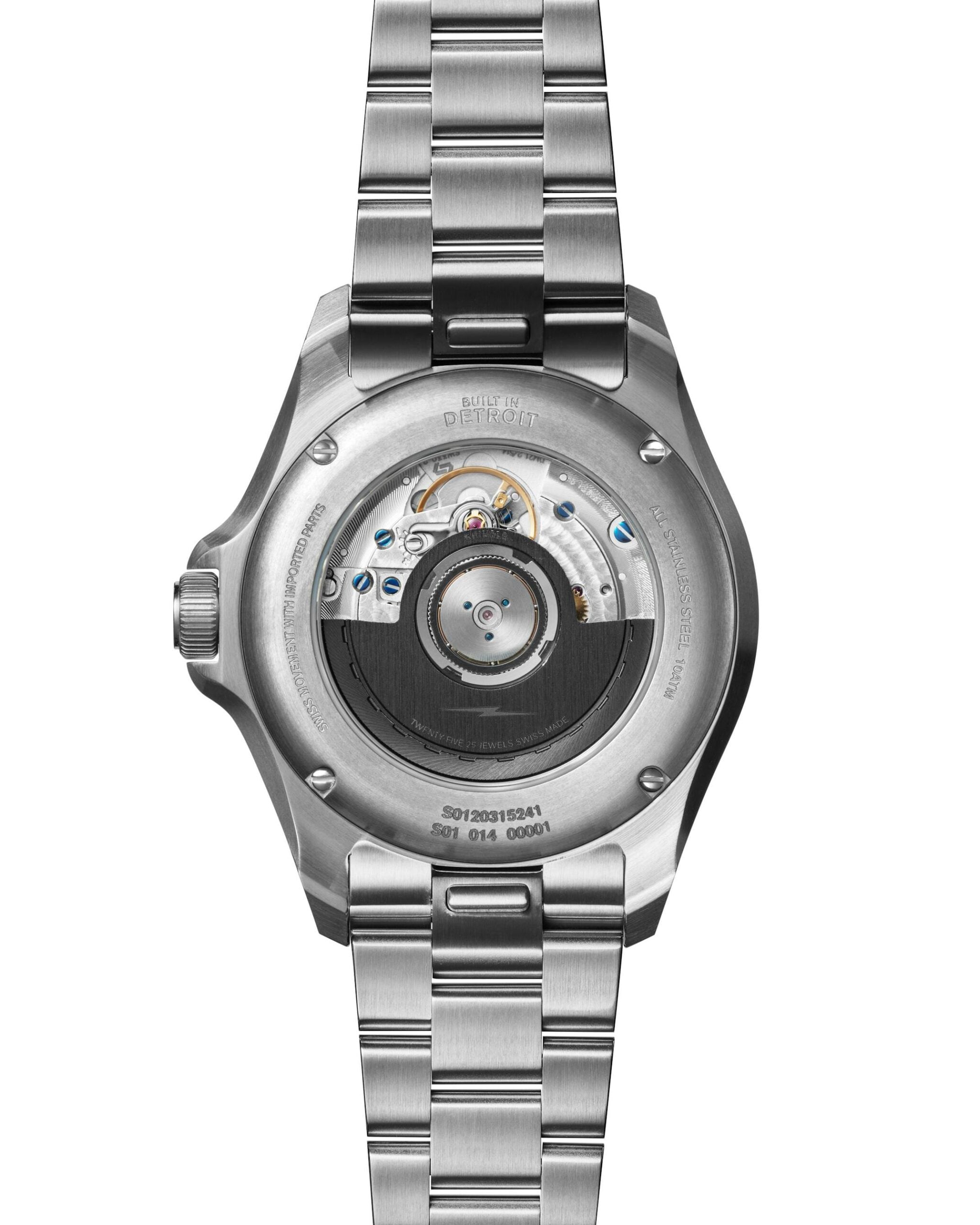 As noted higher up, each one of these is built in Detroit by American workers using many Swiss parts, offering a good balance between American manufacturing and world-famous Swiss movement quality.