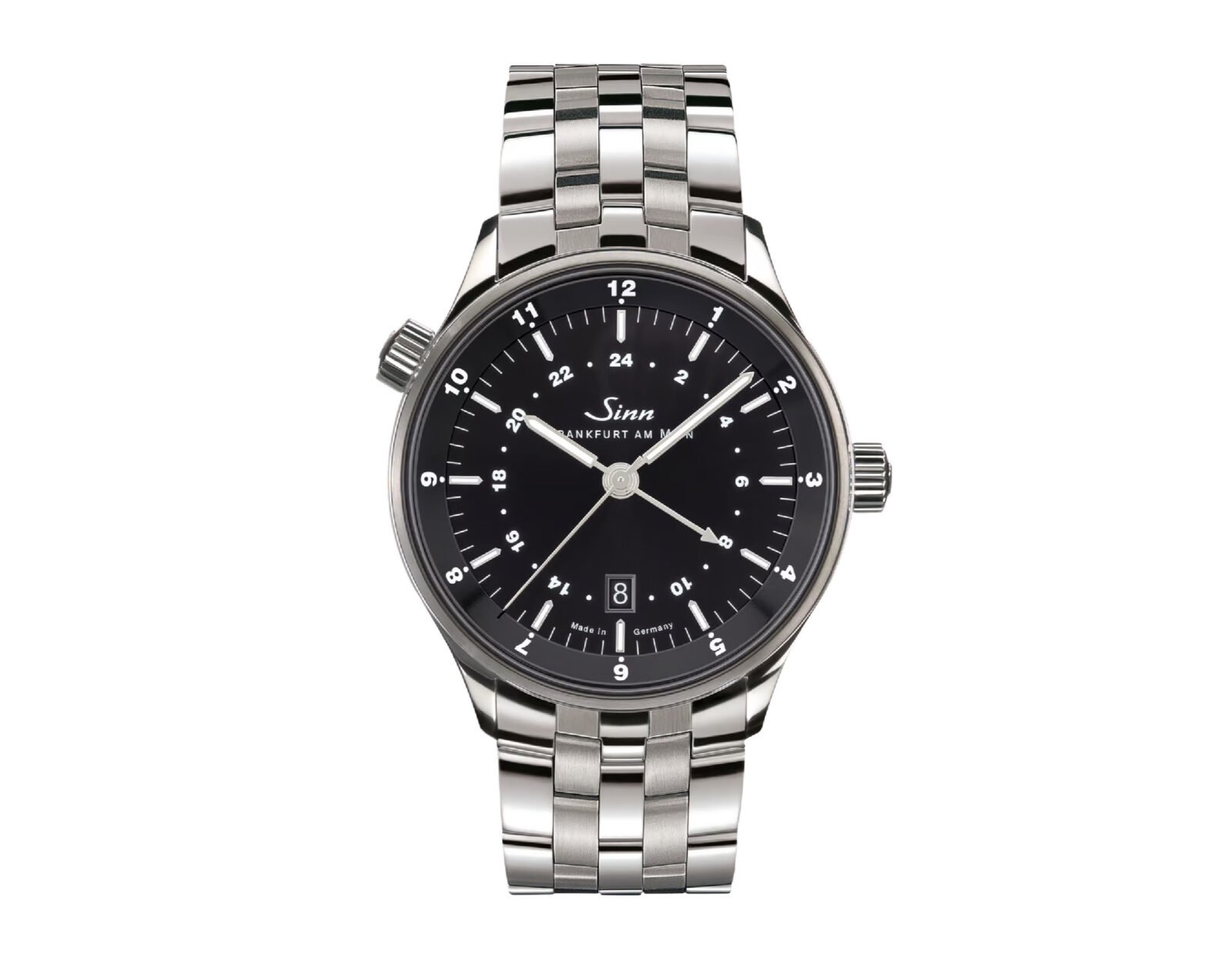 This is the 6096 Frankfurt World Time Watch from German watchmaker Sinn Spezialuhren. Its GMT movement and dial allow you to track three timezones simultaneously.