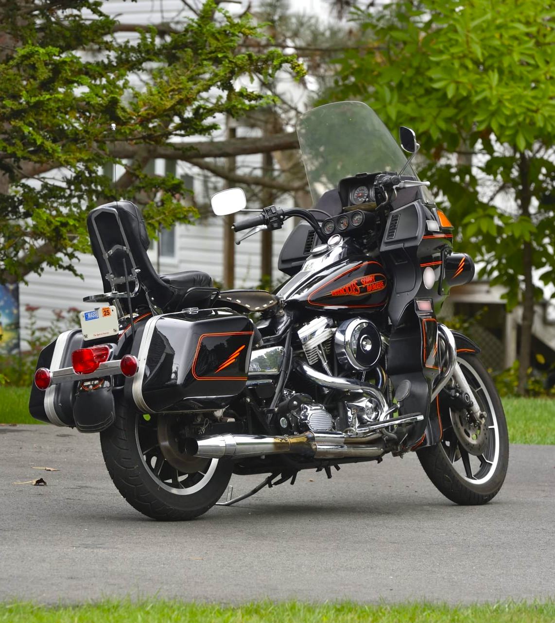 - The FXRT Sport Glide variant combined the FXR chassis with a frame-mounted fairing and hard luggage, creating one of Harley’s most capable long-distance motorcycles. The 1992 example features custom details tied to Barger, Evolution V-twin power, and touring equipment, and it remains notable as the motorcycle shown on the cover of his biography.