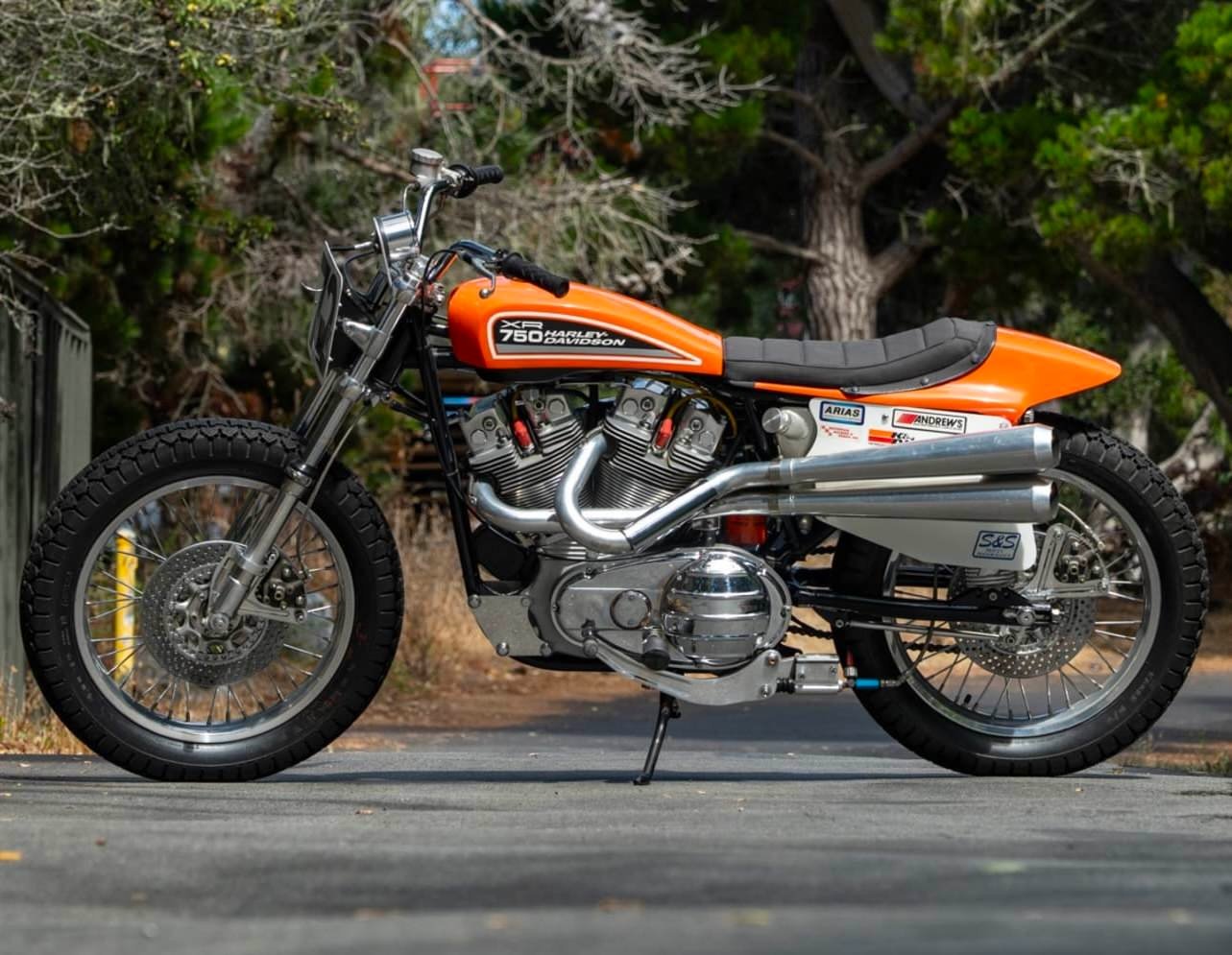 The Harley-Davidson XR750 is undeniably the most famous flat track racing motorcycle in history, the main gripe of many of the bike’s fans is that no road-legal version was ever offered by Harley-Davidson – but some aftermarket custom bike workshops did build some.