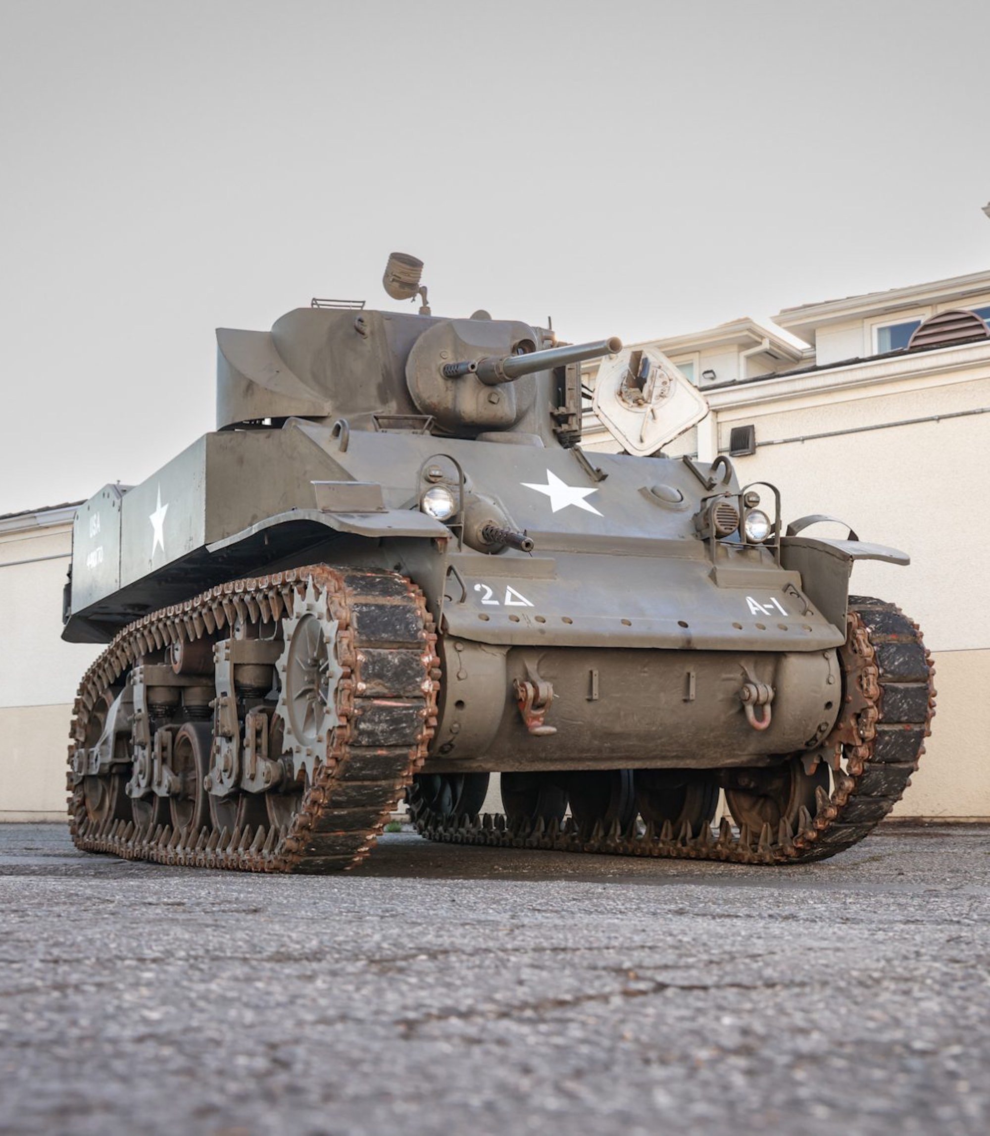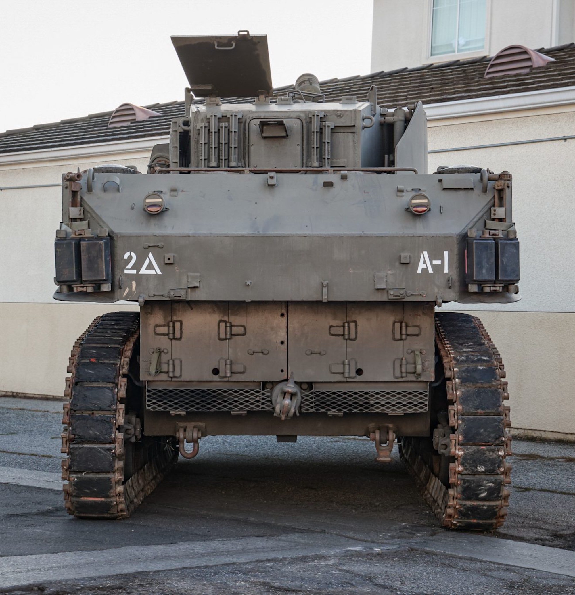 - This example, finished in period-correct olive drab with white military markings, has a hydraulically operated turret, dual-pin tracks, and a white-painted four-crew interior complete with gauges, tiller controls, and a “Little Joe” auxiliary generator. Offered from a private Alabama collection, it’s now listed for sale on Bring a Trailer in Los Angeles, California.