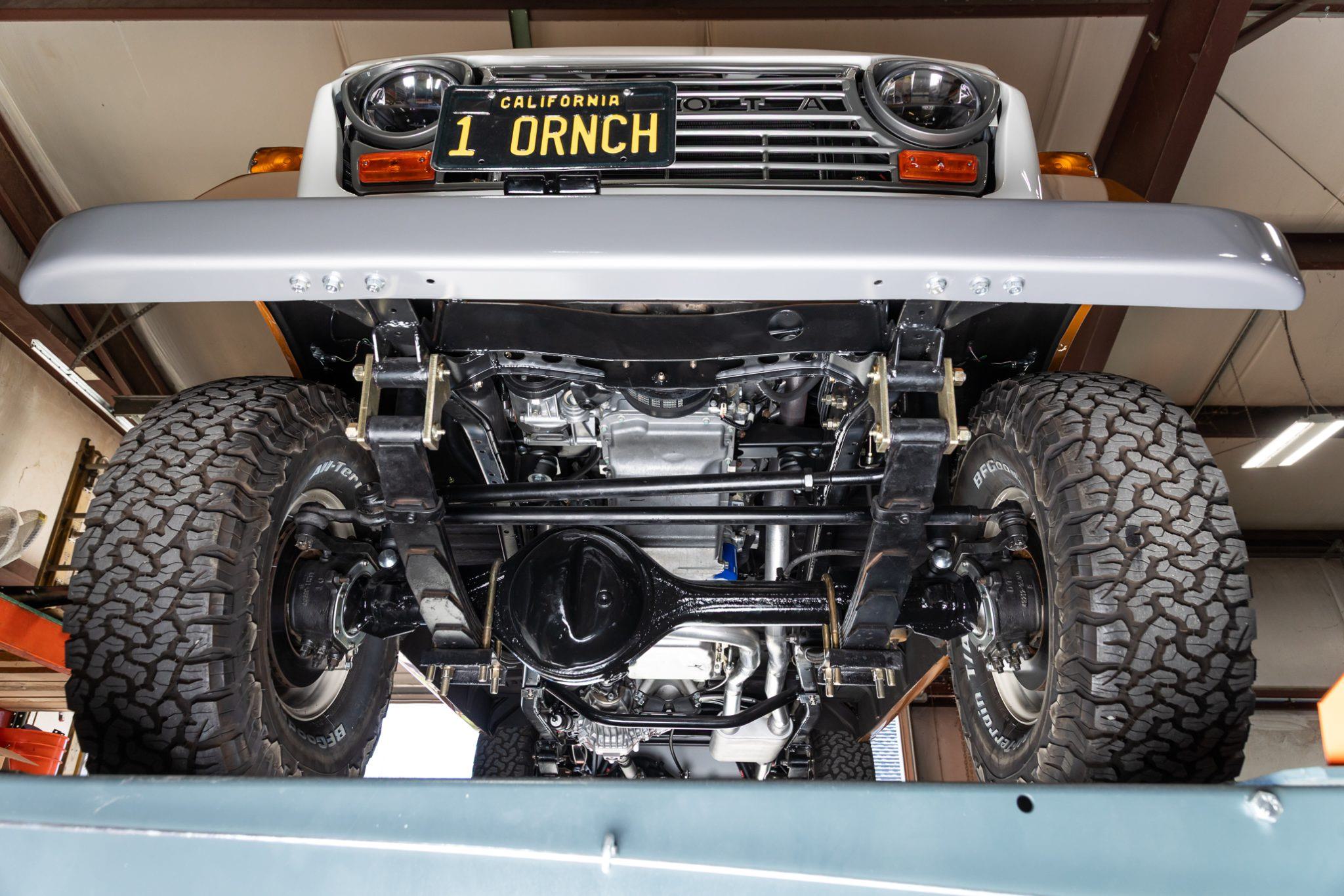 A series of additional supporting upgrades have also been made, including a 6L80 6-speed automatic transmission, uprated driveshafts, an FJ60-sourced rear axle, and quite a bit more. Inside you’ll find an all-new interior with Restomod Air climate control.