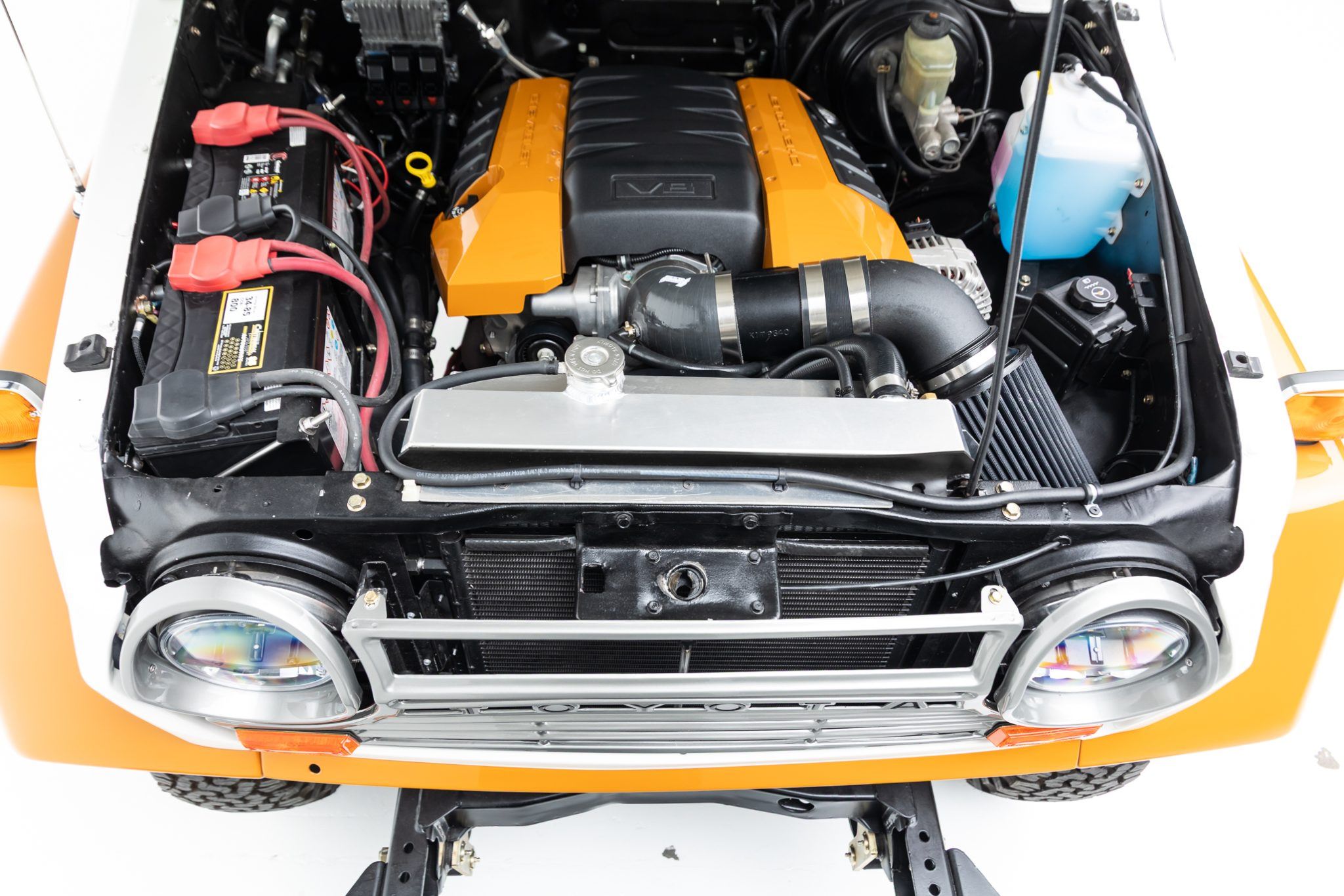 This is a heavily-modified 1974 Toyota Land Cruiser FJ55 restomod that has had its performance completely transformed thanks to the fitment of a Chevrolet Performance 6.2 liter LS3 V8 crate engine producing 430 bhp and 425 lb ft of torque – a massive upgrade over the original Toyota inline-six with its 130 bhp.