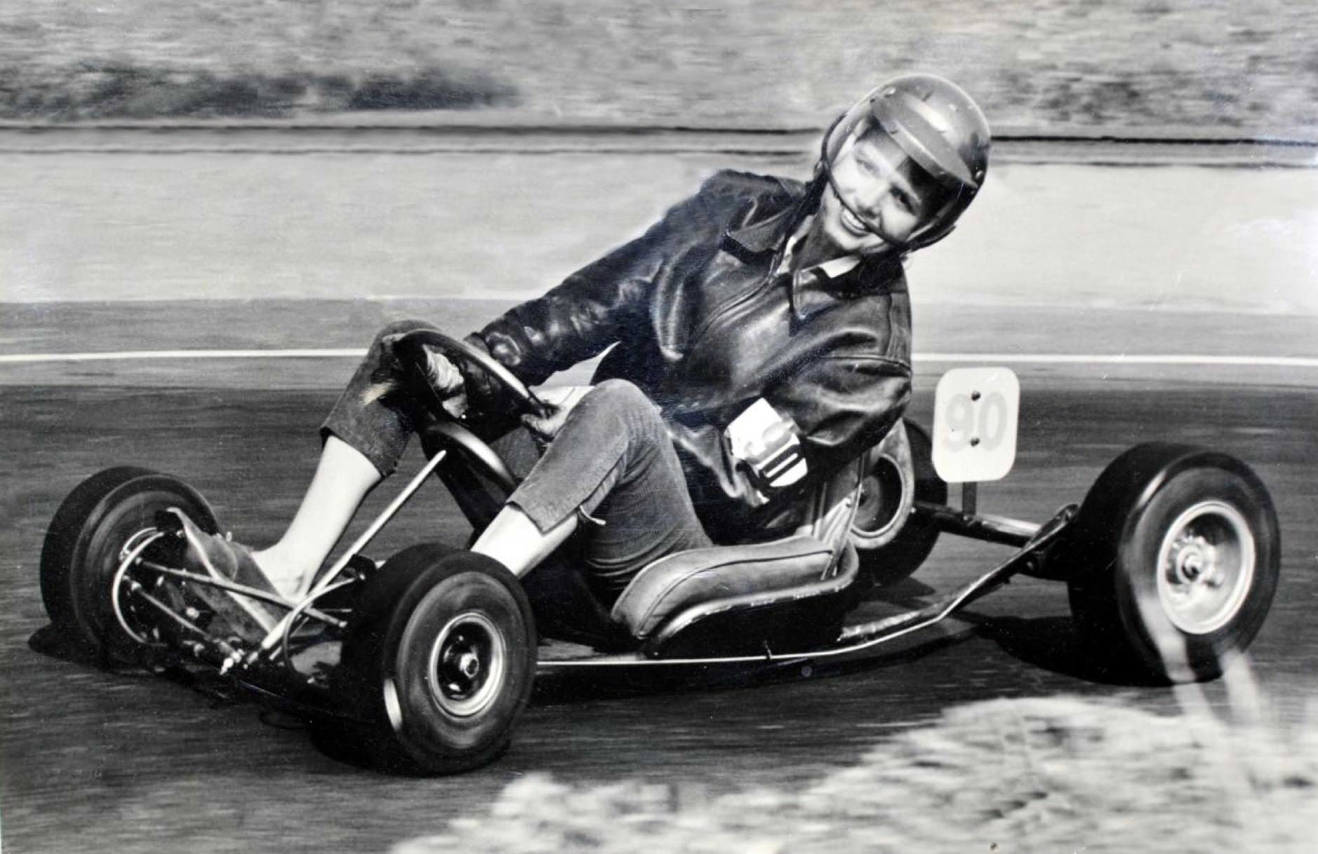 his undated photograph shows Faye “Lady Bug” Pierson piloting one of her own karts. She became one of the best female kart racers in the country, a natural talent she joked was developed in her previous job of delivering newspapers by van.