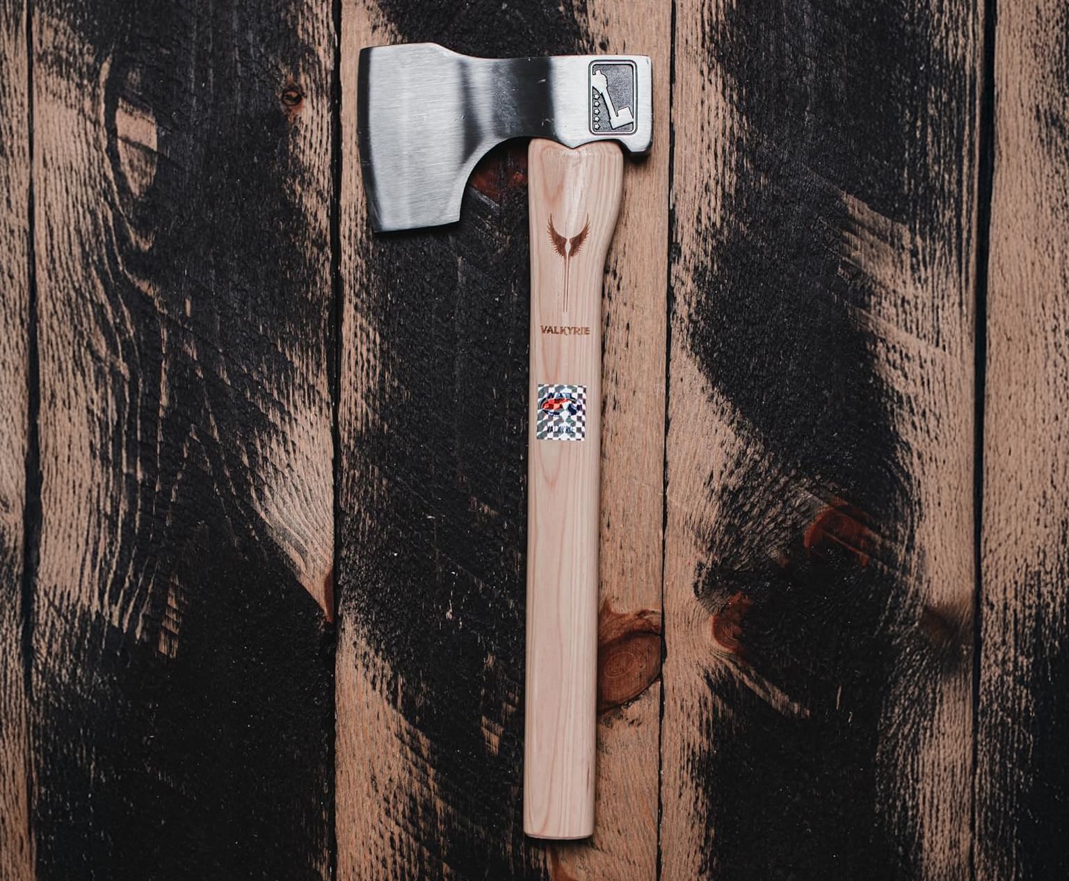 This is the new Valkyrie throwing axe from the team at WATL (the World Axe Throwing League). It has a specially designed head for throwing, allowing it to stick deeply into the target for scoring.