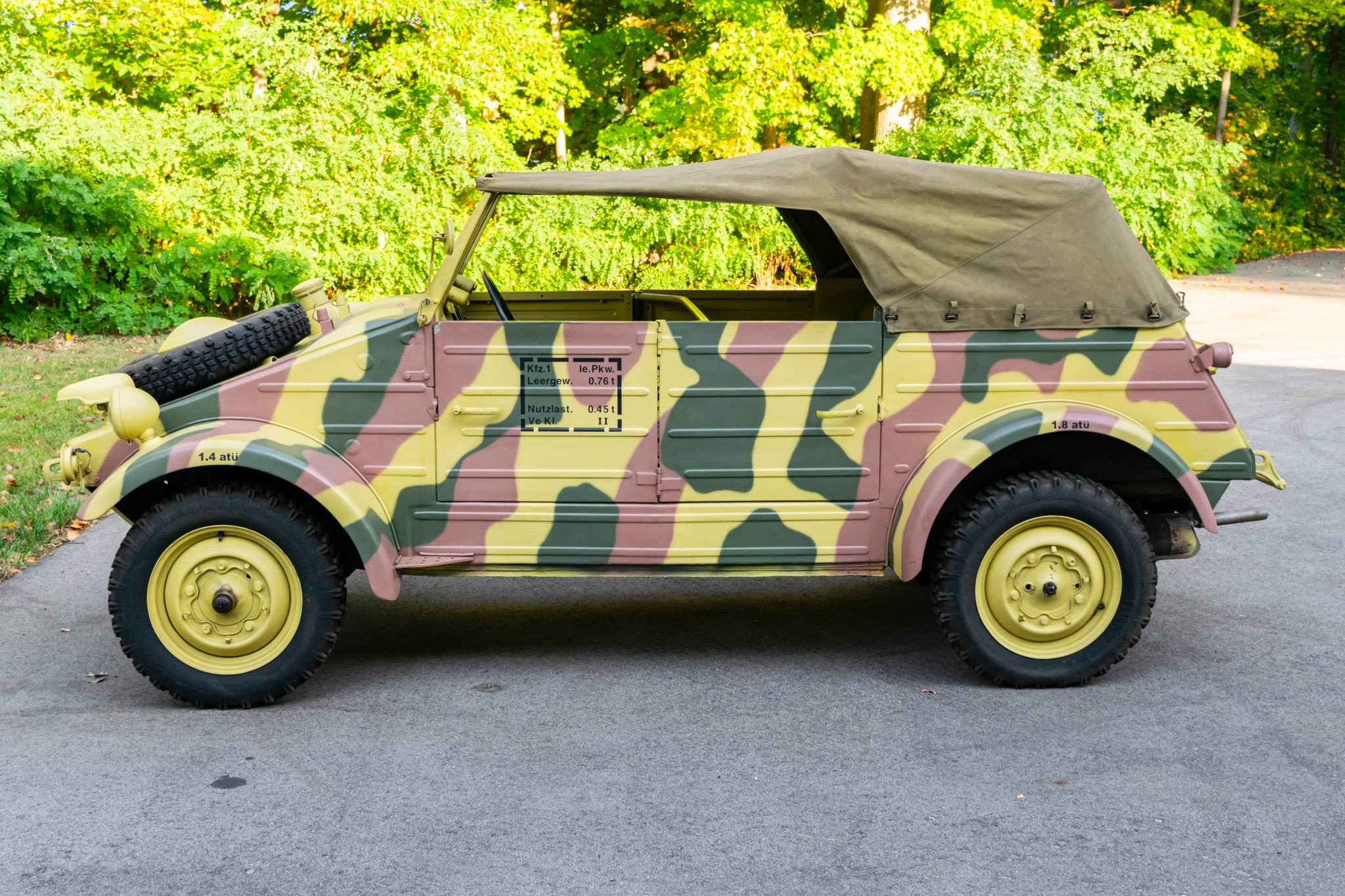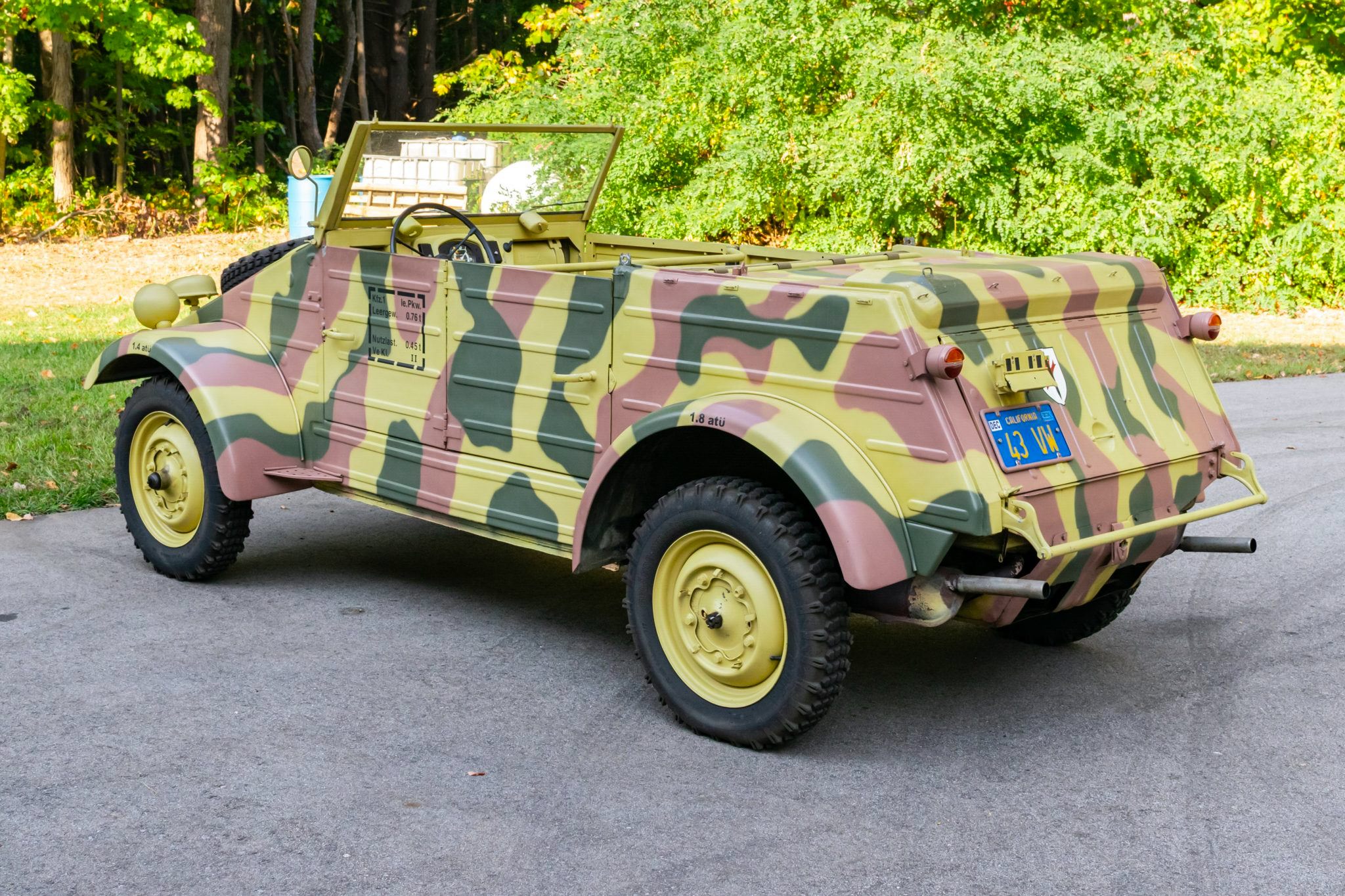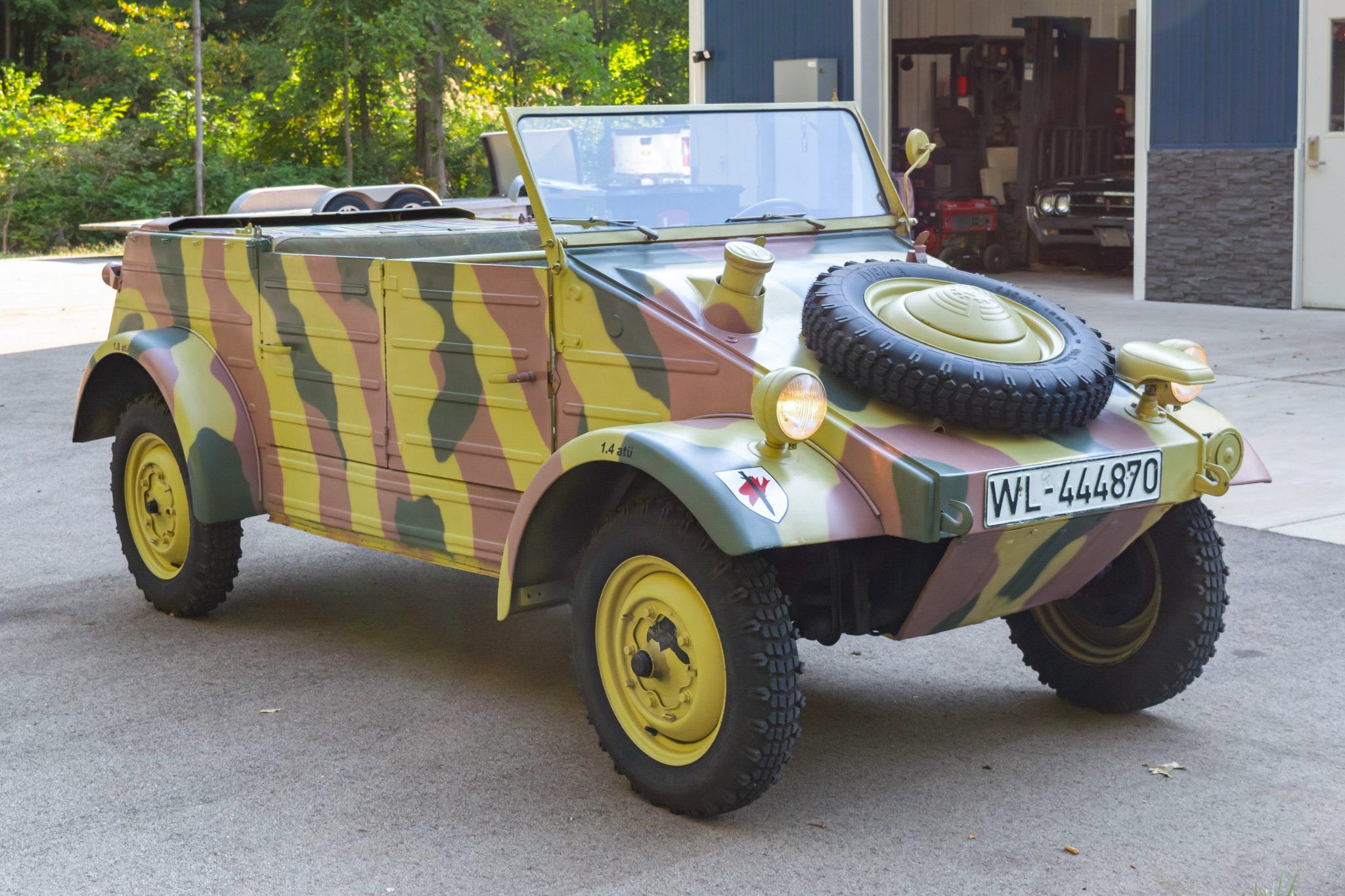 This 1943 Volkswagen Type 82 Kübelwagen is one of roughly 50,000 examples built for the German military during World War II. It was refurbished in Germany during the 1960s, then imported to the United States in 1972.