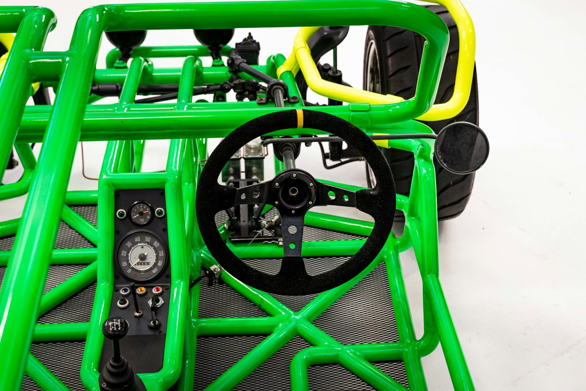 The two vehicles you see here are a first for Benedict Radcliffe, rather than stationary sculptures of cars or other machines at 1:1 scale, they’re actual functioning and drivable cars.