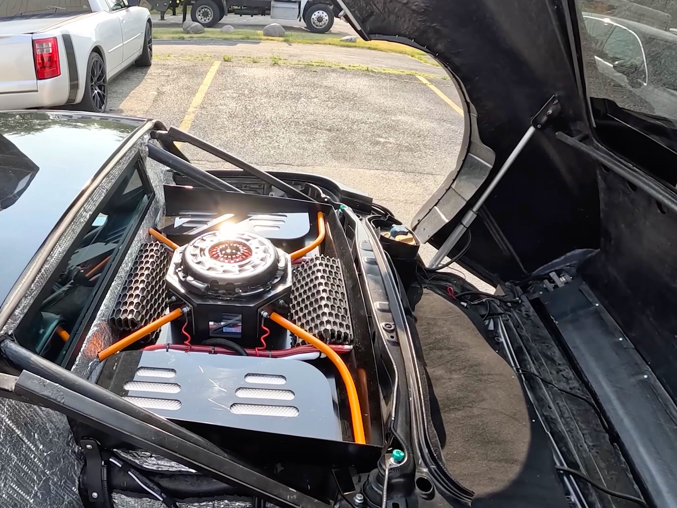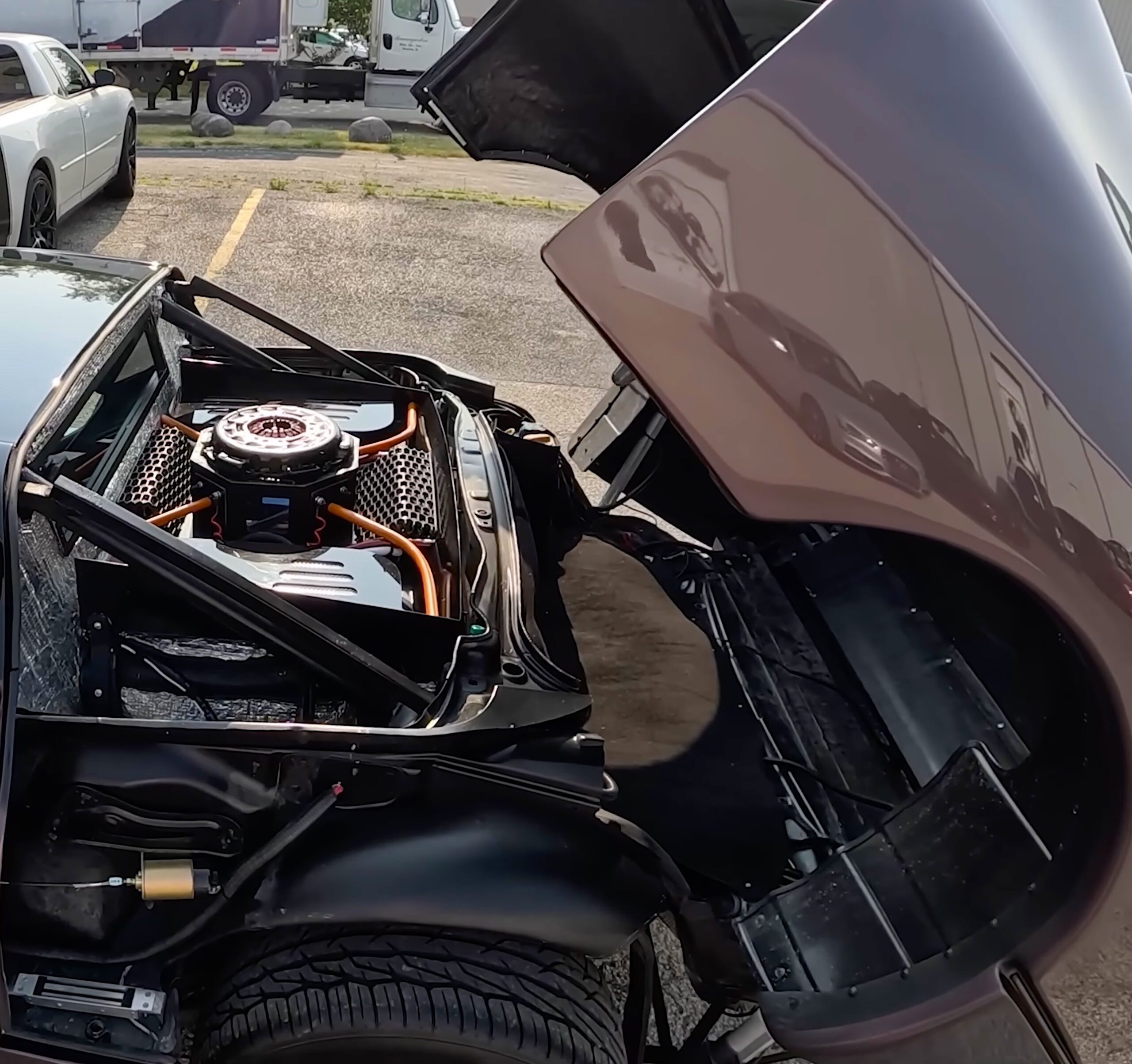 The custom body carefully replicates the M4S’s shape using composite panels, it has scissor doors with Lamborghini-style hinges, and illuminated Aston Martin-style door poppers. The windshield comes from a Ferrari 512 BBi, and the lighting includes perimeter accent strips and a plasma-coil rear plate that glows at night.