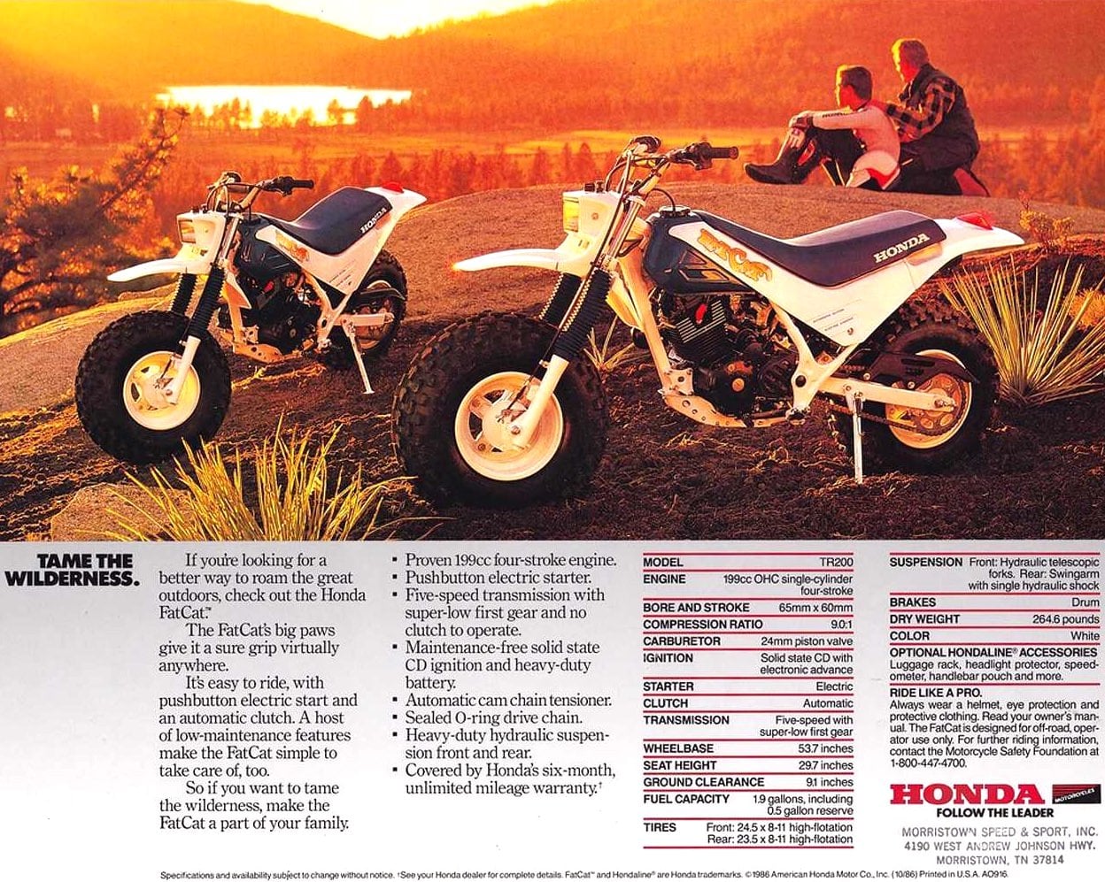 The BW200’s runaway commercial success drew Honda’s attention rather quickly, and in 1986, Honda launched the TR200 Fat Cat as a direct competitor. The two machines were close enough in concept that Dirt Bike Magazine staged a head-to-head shootout in their June 1986 issue. Image courtesy of Honda.